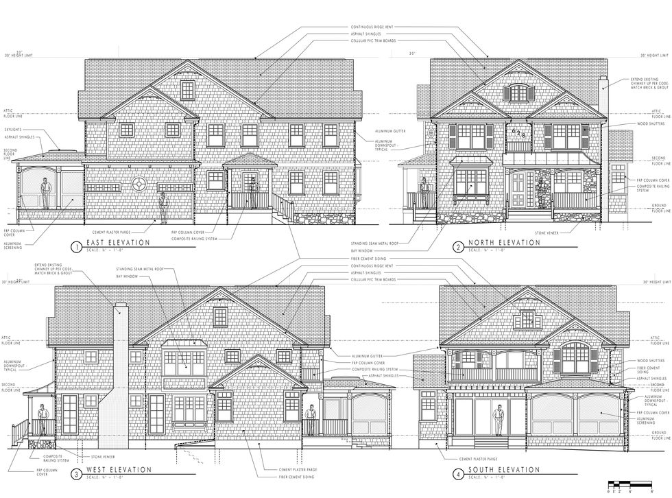 The design for this large remodel/addition home economically utilized the framing and foundations of the existing one-level cape. It features an open main floor plan, rear screen porch, three bedrooms + luxurious owner's suite, and walk-up attic. A large, finished basement contains a sewing/crafting area, workshop, laundry room, storage and mechanical spaces, and a play area for grandchildren.